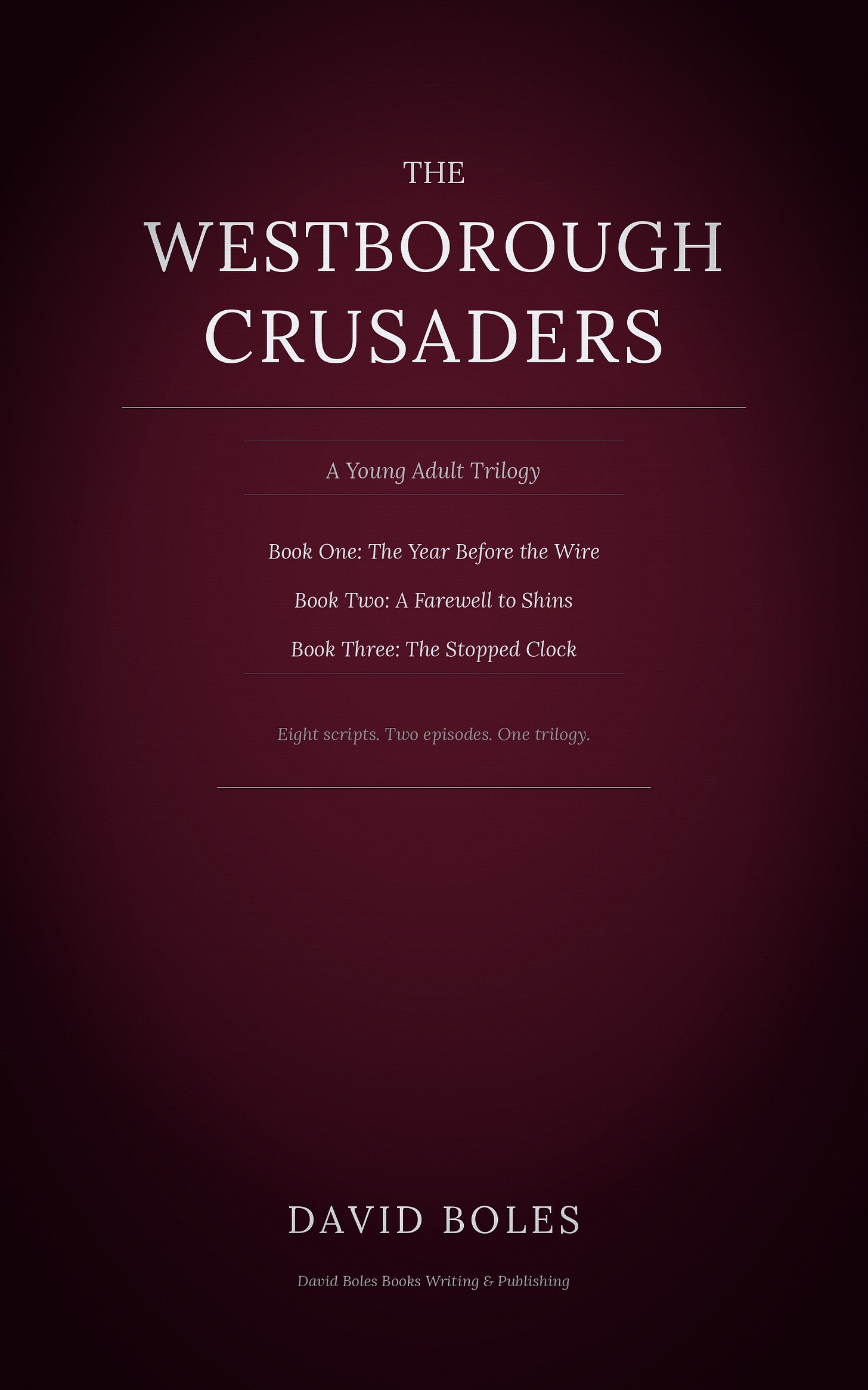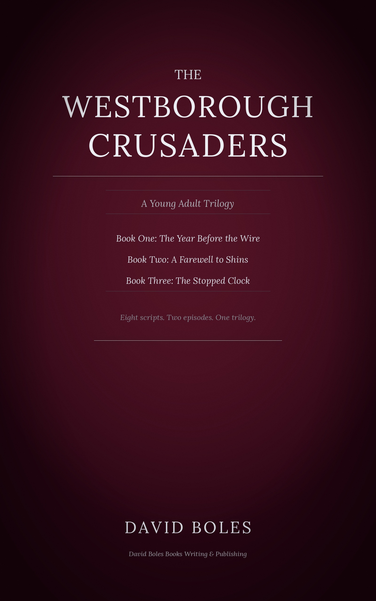 The Westborough Crusaders trilogy, published by David Boles Books, consists of three novels: The Year Before the Wire, which traces the year before the series begins, documenting how each character arrived at the first day of sophomore year already transformed by loss; A Farewell to Shins, which expands the eight original episodes into full novelistic interiority, going inside the heads of teenagers whose external behavior the adults in the building could see but whose internal experience the adults could not access; and The Stopped Clock, which follows the consequences into territory the original scripts could not reach, asking what survives when the pressure that forged these friendships does not stop.