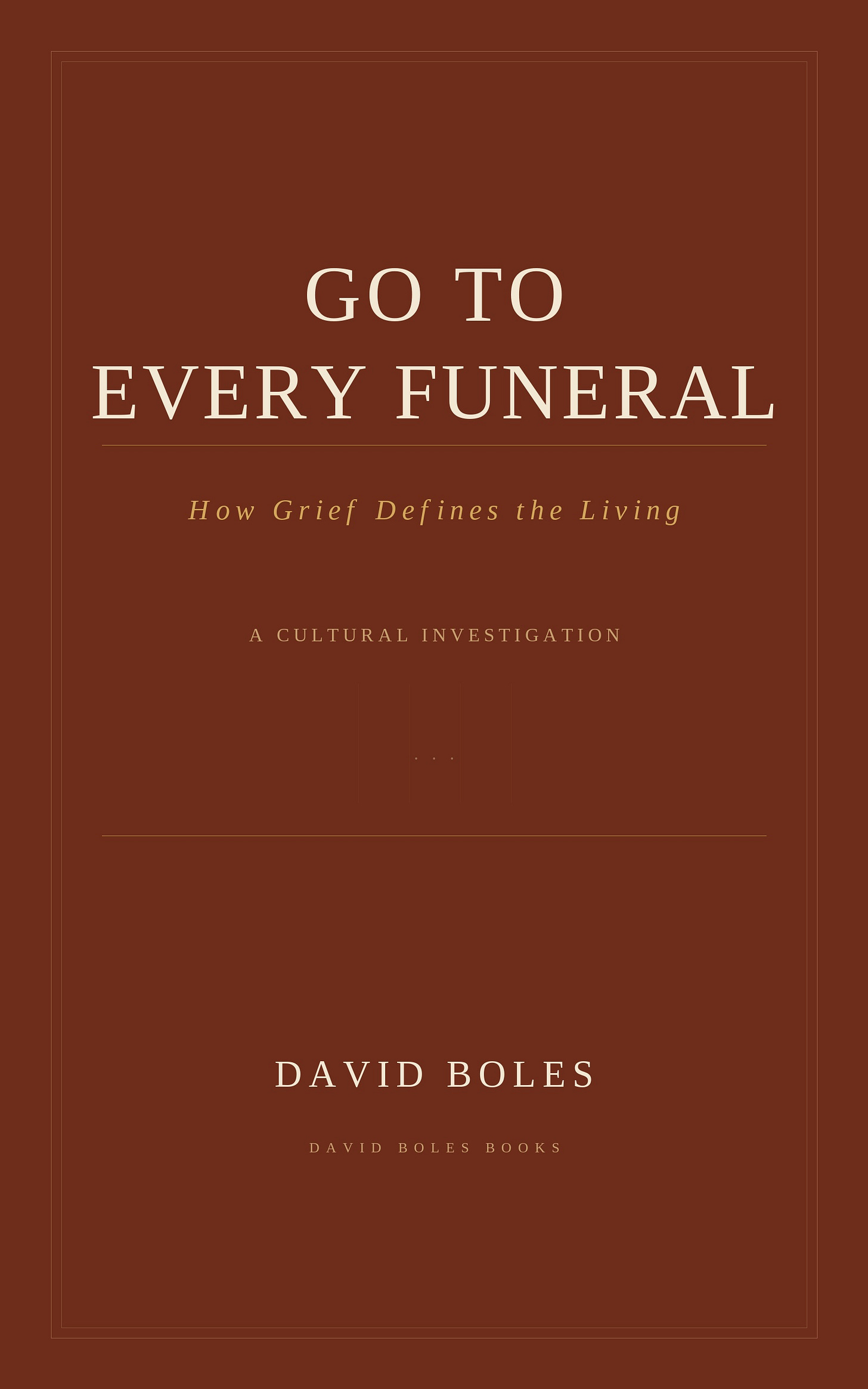 I have written a new book about this. It is called “Go to Every Funeral: How Grief Defines the Living,” and it is published by David Boles Books Writing and Publishing, and the title comes from something I overheard in a cafe in Newark, New Jersey, about twenty-five years ago. A mother pointed at her college-age daughter, tapped the table with her finger, and said: “Go to every funeral. Even if you don’t want to. Even if you don’t know them. If you know the people around them, you go.”